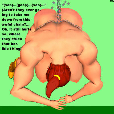 hanging from the ceiling, to the trembling, fearful slave's slimly muscled